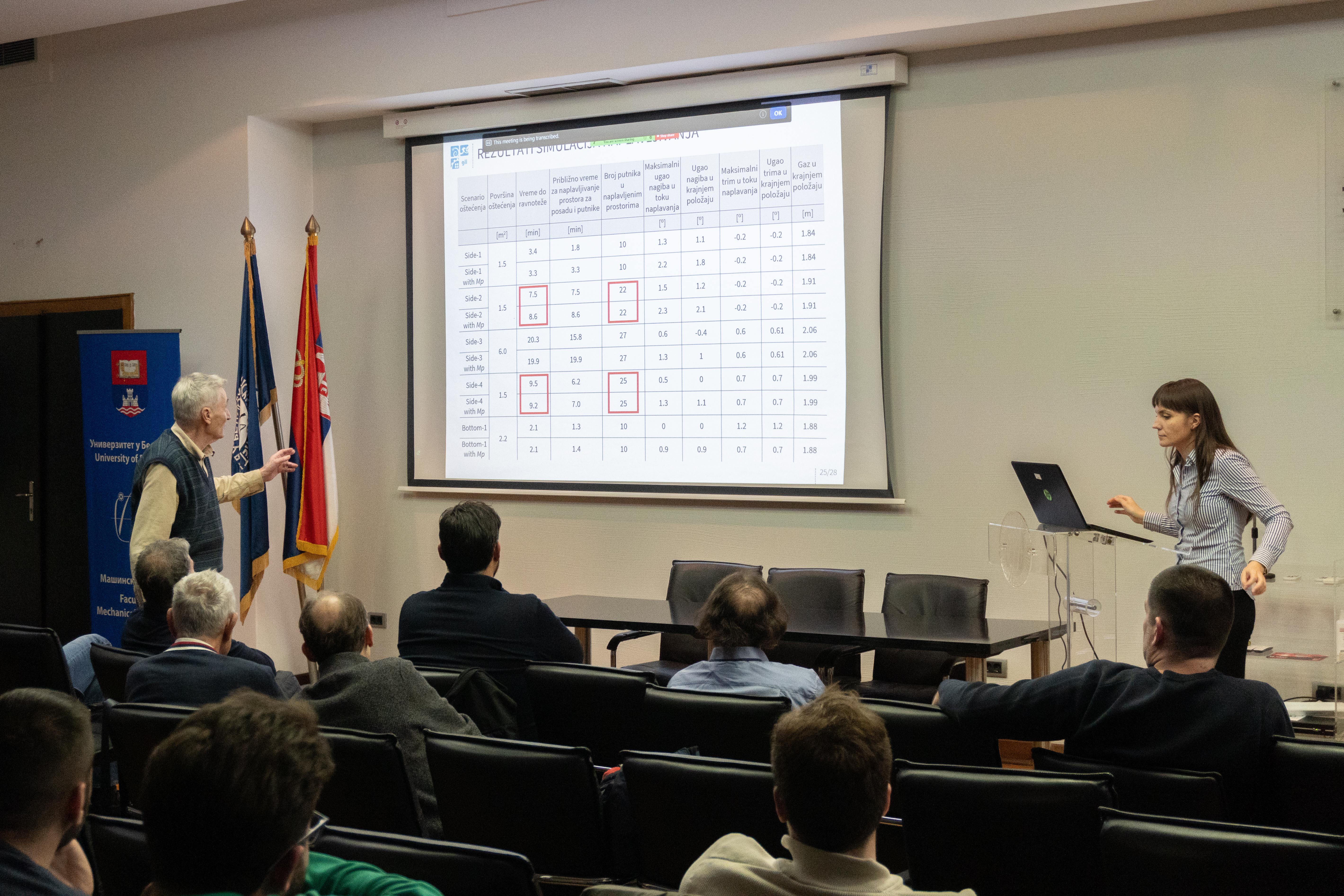 - Pitanja publike i diskusija je bila raznolika – učesnici su bili zainteresovani za pretpostavke i ograničenja vezane za simulaciju, kako ovi rezultati mogu da utiču na proces projektovanja broda, izradu operativnih procedura za evakuaciju i obuku posada, kao i na potencijalne modifikacije propisa za rečne putničke brodove u Evropi.