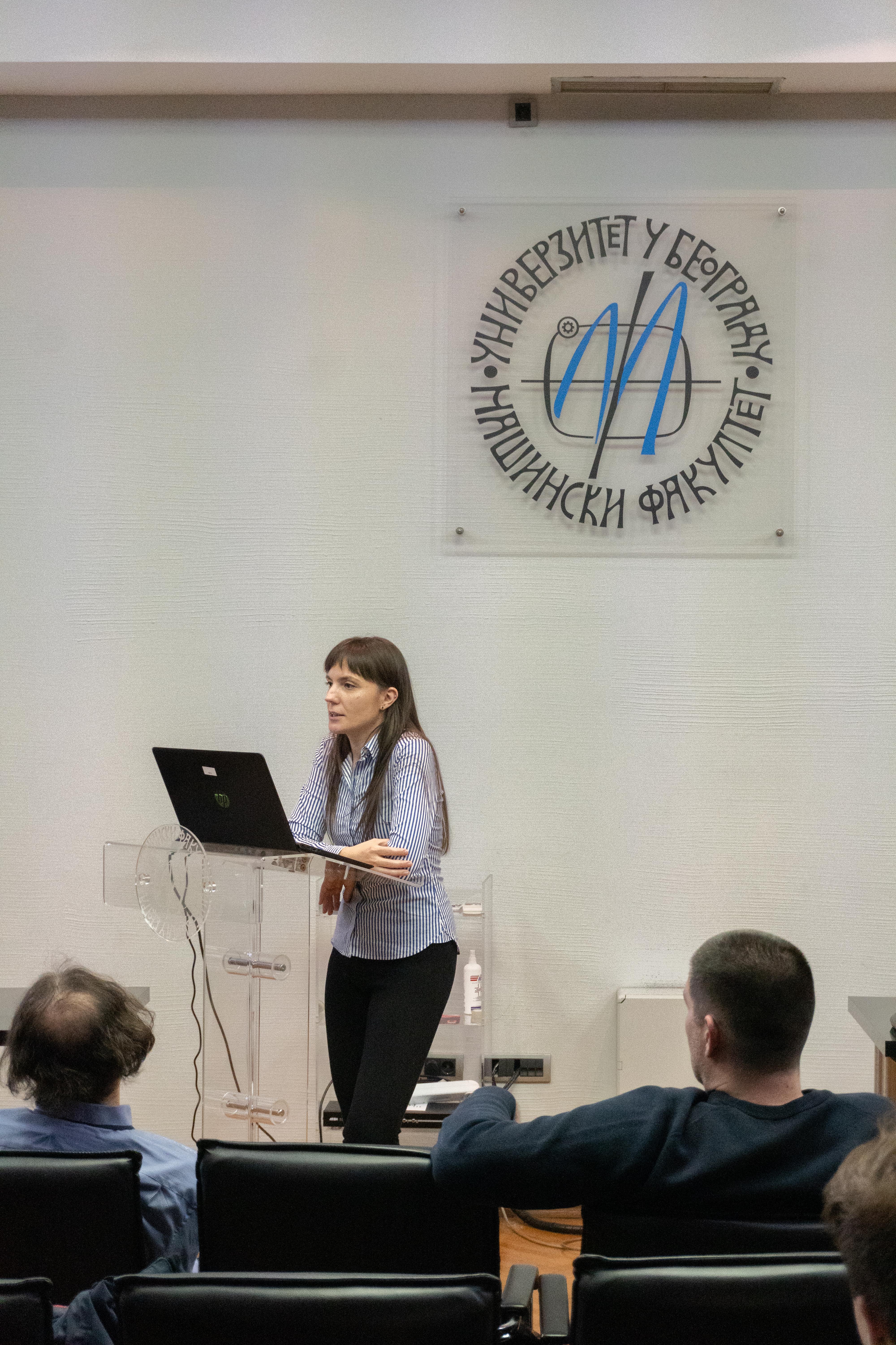 Asistentkinja Ines Ivković je u ime kolega izložila rezultate istraživanja vezanog za procenu uticaja modifikacije pramca broda za prevoz generalnog tereta na njegov otpor i energetsku efikasnost. Istraživanje za rad pod nazivom