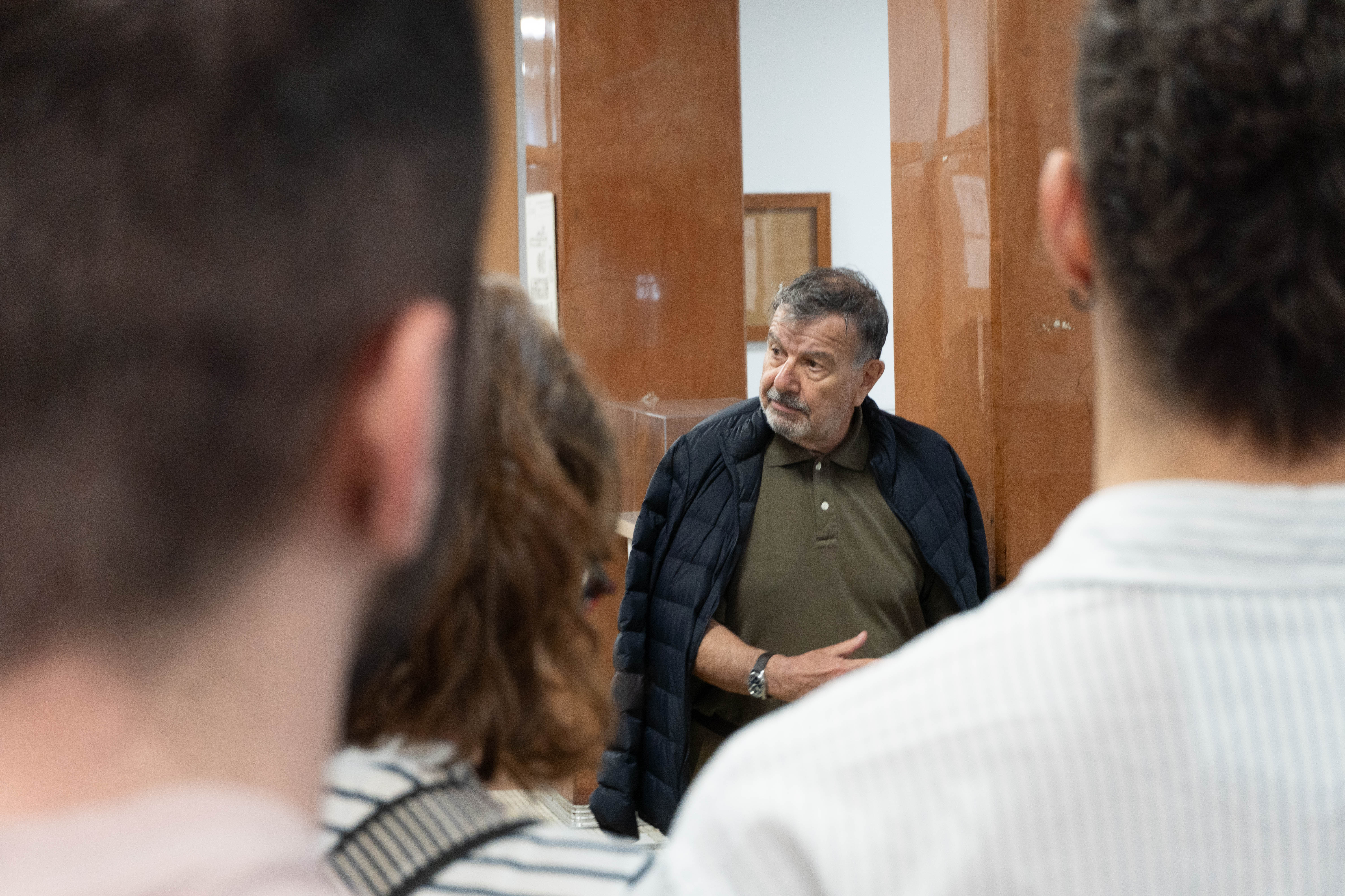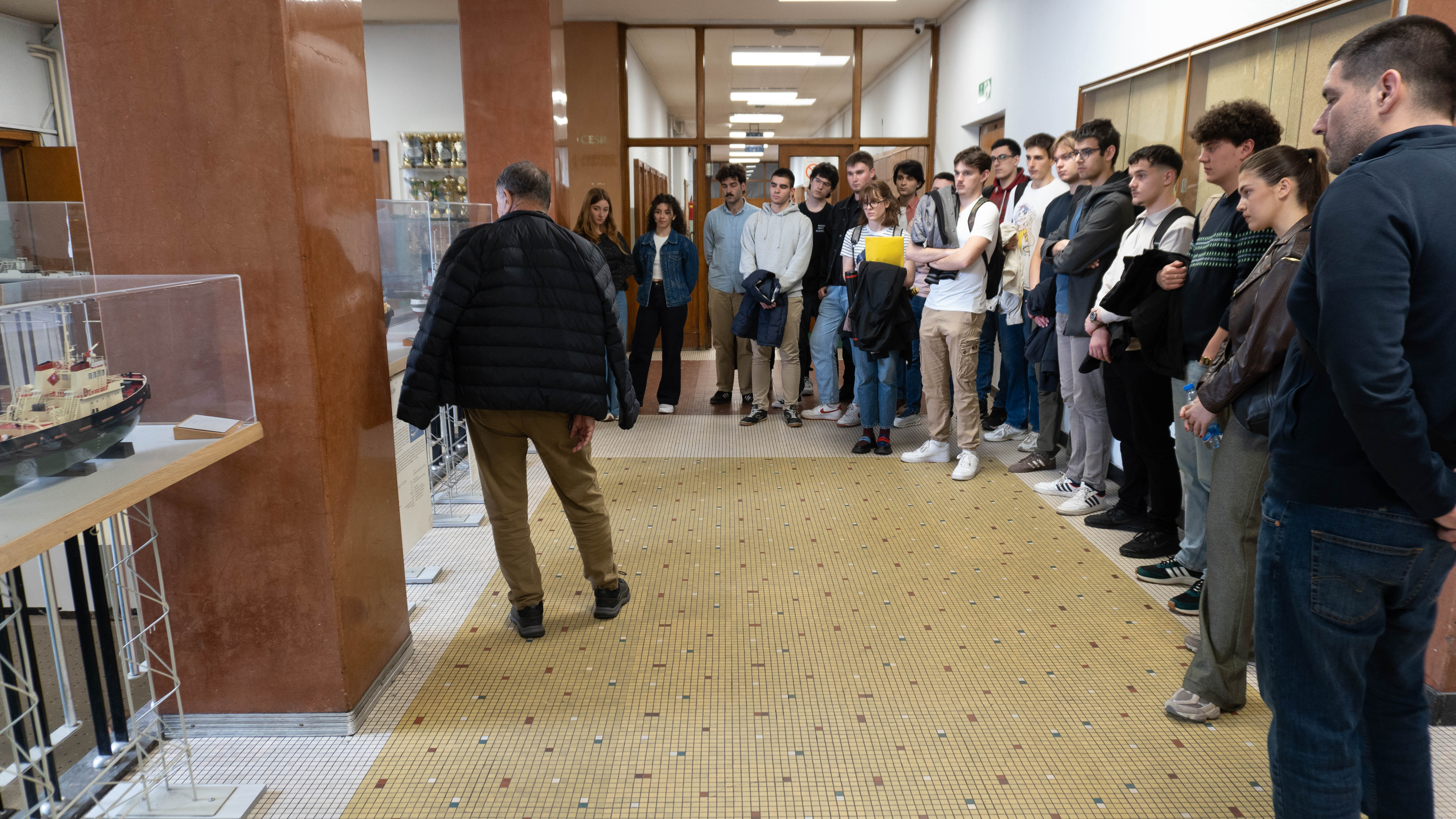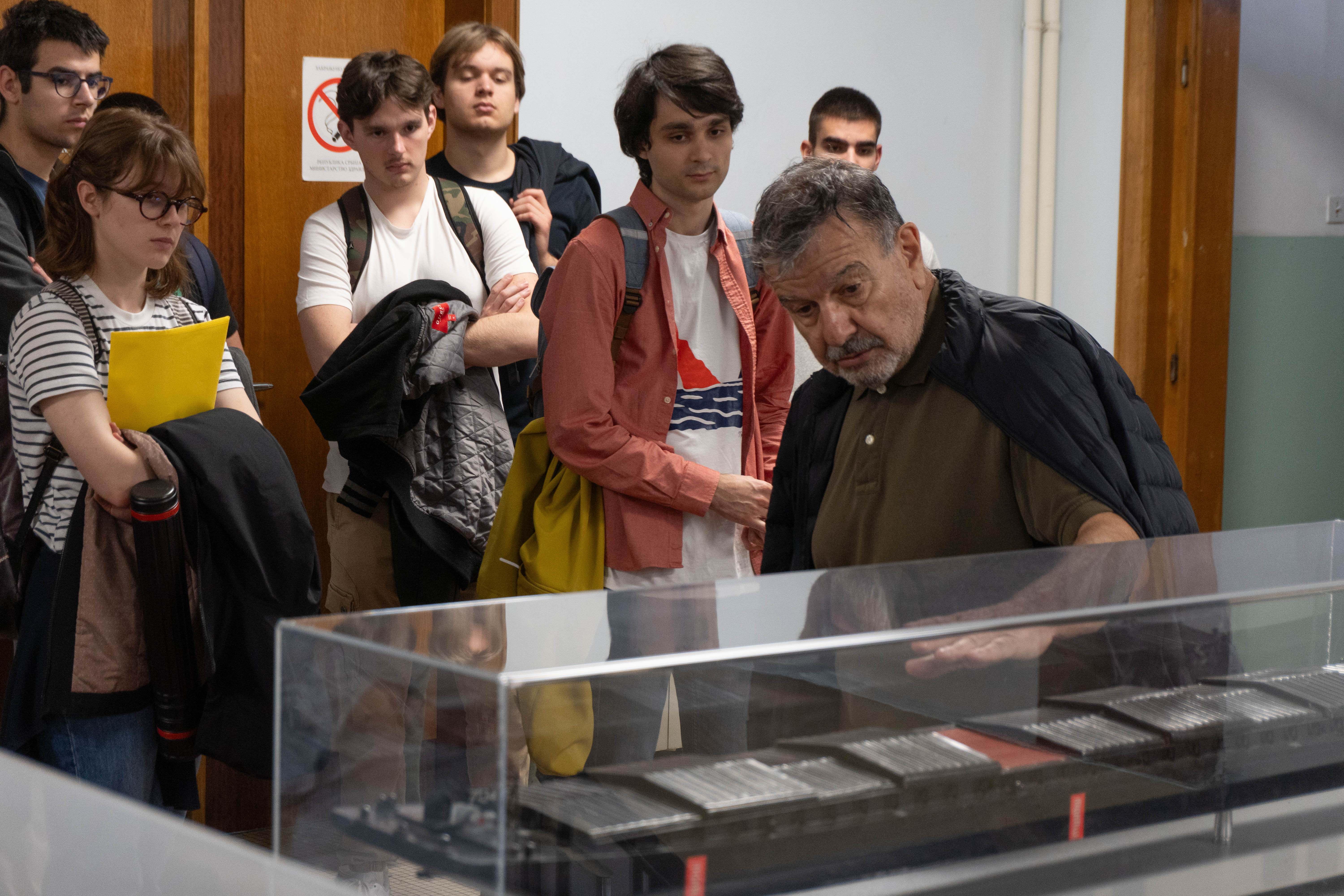 Vođenje kroz kolekciju predvodio je redovni profesor u penziji dr Dejan Radojčić, čiju kratku biografiju (za one koji ga možda ne poznaju) možete pročitati ovde. Zahvaljujući radnom iskustvu u brodogradilištu Beograd pre zaposlenja na Mašinskom fakultetu, prof. Radojčić je bio idealan predavač za ovu temu. U ograničenom vremenu koje je imao na raspolaganju, ponudio je uvid u specifičnosti plovnih objekata i zanimljive projektne zahteve, a posebnu pažnju posvetio je tehnologiji rečnih brodova – tegljačima, guračkim sastavima i samohodnim brodovima. Priča nije mogla da protekne bez osvrta na ulogu generacije profesora pre njega, čiji je uticaj duboko utkan u istoriju brodogradilišta Beograd, ali i Katedre za brodogradnju – prof. Ribar, prof. Zrnić, prof. Bilen i prof. Jovanović.