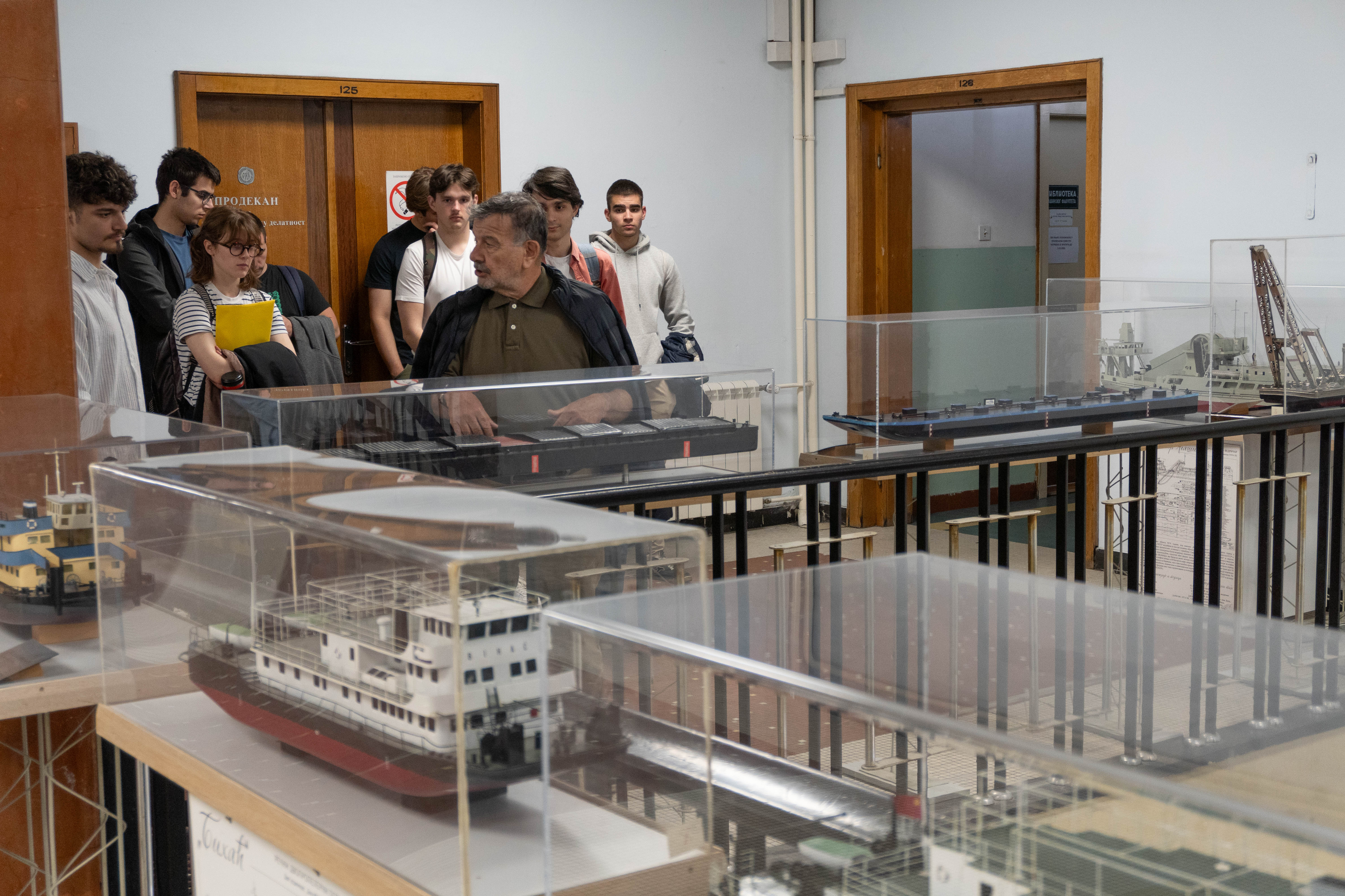 Makete brodova koje se nalaze u holu na prvom spratu Mašinskog fakulteta predstavljaju vrednu kolekciju koju Katedra za brodogradnju rado predstavlja. Danas su poslužile kao deo praktične nastave za studente druge godine koji slušaju predmet Geometrija broda.